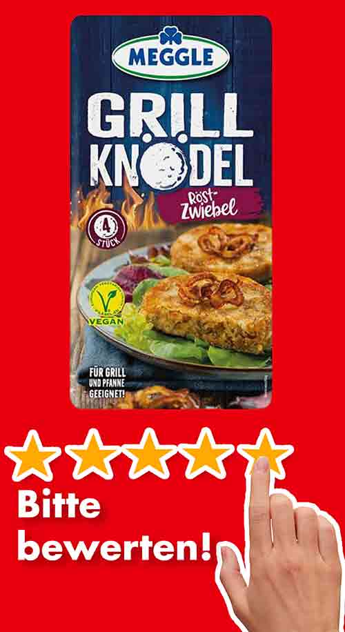 Die Grillknödel mit Röstzwiebeln werden von Meggle hergestellt.