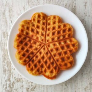 6 Waffeln backen. Bei mittlerer Hitze.Ca. 3,5 bis 4 Minuten pro Waffel.